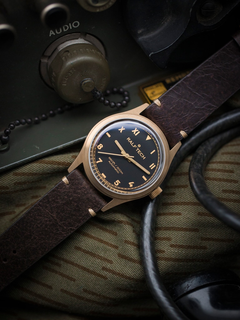 ACADÉMIE est la plus classique des RALF TECH. Surnommé «error proof» dans les années 30, le cadran California donne à ACADÉMIE un caractère unique et une lisibilité sans égale. C’est aussi une référence pour les connaisseurs tant les cadrans California sont rares. Cette version en bronze en fait une double rareté.