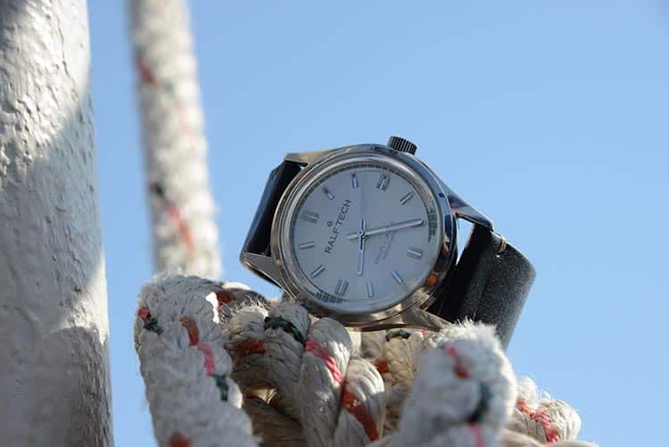 ACADÉMIE est la plus classique des RALF TECH. Inspirée par l’ambiance du sud et des vacances, la «Riviera» arbore un cadran blanc ensoleillé qui invite au voyage… Sur la Riviera ou ailleurs !