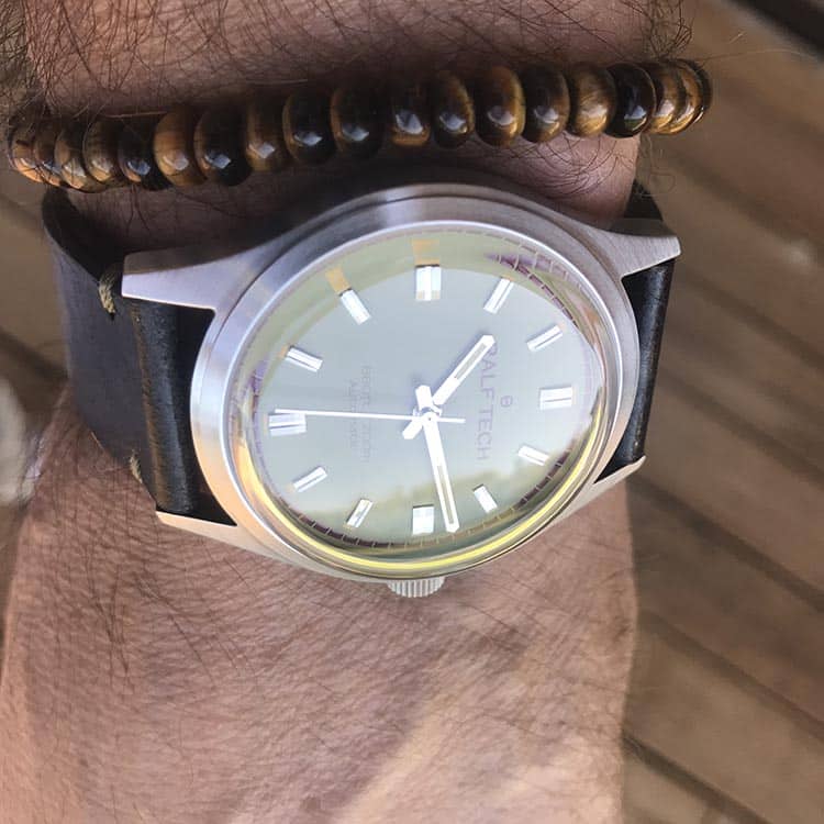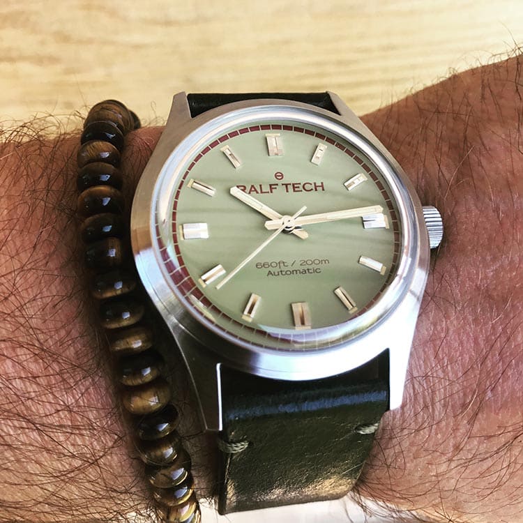 ACADÉMIE est la plus classique des RALF TECH. Cette version nous invite à travers son cadran vert « Tundra » à parcourir la nature pour y dénicher ses beautés et ses secrets. Une couleur typique des années 60 qui conviendra aux plus audacieux.