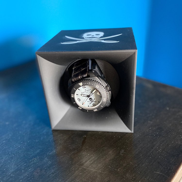 Afin de garder sa précision et prolonger sa durée de vie, une montre automatique doit toujours être en mouvement. Cet écrin SWISS KUBIK joue sur le rappel des couleurs RALF TECH et sur la modernité épurée des lignes. Simplifié à l’extrême, ce remontoir est un concentré des éléments essentiels du savoir-faire des deux marques. Son revêtement Soft Touch, lui confère une douceur incroyable au toucher. Conçu et fabriqué à la main d’un bout à l’autre de la chaîne de valeur, ce remontoir allie respect de la tradition Suisse et capacité d’innovation. L’esprit PIRATES SHADOW en plus !