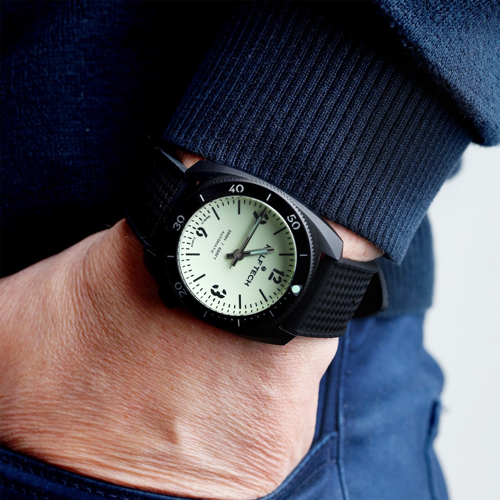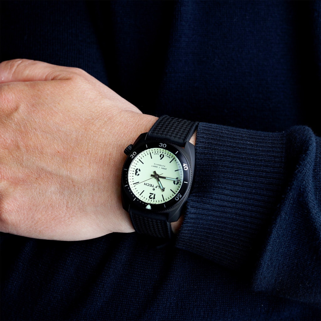 La WRB est la plus polyvalente des plongeuses RALF TECH. Moins imposante que sa cousine la WRV elle en conserve l’esprit, les principales caractéristiques et les fonctions. Sa dimension de 39mm conviendra à tous les poignets. Cette version black « Full Lume », toute en contraste, est à la fois originale et incroyablement luminescente. Et c’est une version ultra limitée!