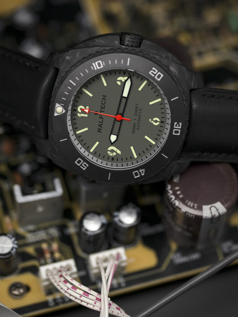- Acier 316L avec traitement PVD noir, surfaces luminescentes SuperLuminova® C5